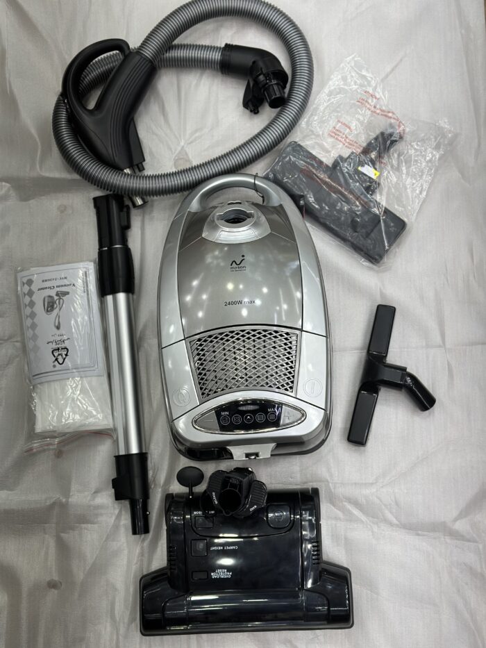 معرفی جدید ترین جارو برقی روز دنیا برند مایسان آلمان 4 myson مدل mvc-2436HB تحت لیسانس آلمان جارو برقی مایسان آلمان myson مدل mvc-2436HB مجهز به سه پارو در سایزهای مختلف و سری کمپرسور دار میباشد این مدل جارو برقی myson آلمان مدل mvc-2436B تنها جارو برقی دو موتور در دنیا است که این جارو برقی به غیر از این که خود جارو برقی یک موتور مجزا دارد مجهز به یک پارو موتور دار برای راحتی جمع آوری مو حیوانات که به اصطلاح به پارو animal معروف است جارو برقی مایسان آلمان myson مدل mvc-2436B با قدرت ۲۴۰۰ وات مکندگی بالا مصرف انرژی A با مصرف برق خیلی پایین یکی از بهترین قدرت های داخل بازار میباشد که به سری کمپرسور معروف هست که با این خصوصیات یکی از پرفروش ترین جارو برقی های داخل بازار کشورهای اروپایی میباشد این مدل mvc-2436HB مدل myson جارو برقی مایسان آلمان در دو رنگ مشکی و طوسی با رنگهای متالیک ضد خش و مجهز به لوله آلمینیومی تلسکوپی و سبک و لوله خرطومی بزرگ با تنظیم روشن کردن پارو و خنک کننده موتور در حال حاضر پر فروش ترین محصول داخل بازار است که با برندهای بوش و آاگ اصلا قابل مقایسه نیست