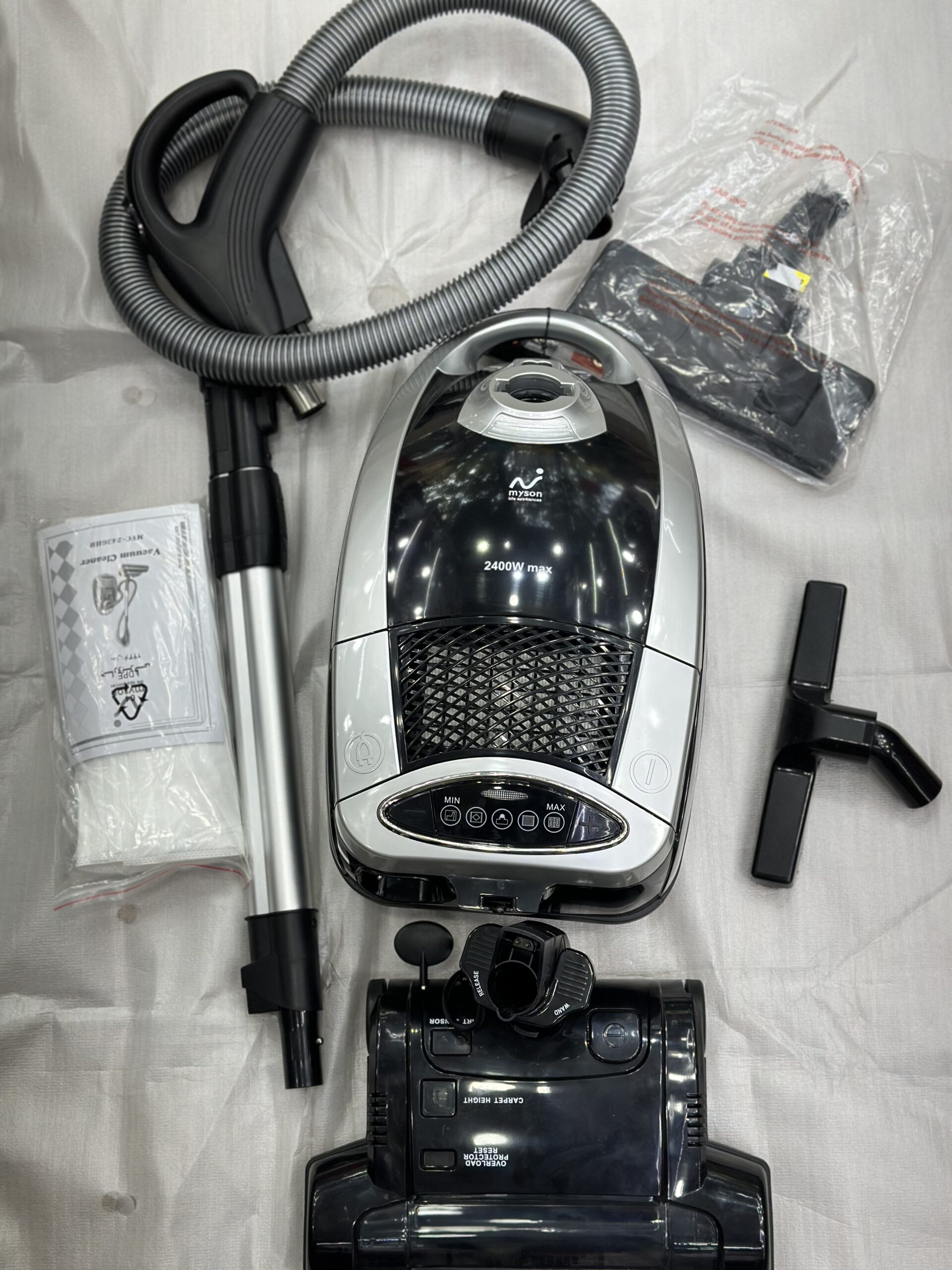 معرفی جدید ترین جارو برقی روز دنیا برند مایسان آلمان 4 myson مدل mvc-2436HB تحت لیسانس آلمان جارو برقی مایسان آلمان myson مدل mvc-2436HB مجهز به سه پارو در سایزهای مختلف و سری کمپرسور دار میباشد این مدل جارو برقی myson آلمان مدل mvc-2436B تنها جارو برقی دو موتور در دنیا است که این جارو برقی به غیر از این که خود جارو برقی یک موتور مجزا دارد مجهز به یک پارو موتور دار برای راحتی جمع آوری مو حیوانات که به اصطلاح به پارو animal معروف است جارو برقی مایسان آلمان myson مدل mvc-2436B با قدرت ۲۴۰۰ وات مکندگی بالا مصرف انرژی A با مصرف برق خیلی پایین یکی از بهترین قدرت های داخل بازار میباشد که به سری کمپرسور معروف هست که با این خصوصیات یکی از پرفروش ترین جارو برقی های داخل بازار کشورهای اروپایی میباشد این مدل mvc-2436HB مدل myson جارو برقی مایسان آلمان در دو رنگ مشکی و طوسی با رنگهای متالیک ضد خش و مجهز به لوله آلمینیومی تلسکوپی و سبک و لوله خرطومی بزرگ با تنظیم روشن کردن پارو و خنک کننده موتور در حال حاضر پر فروش ترین محصول داخل بازار است که با برندهای بوش و آاگ اصلا قابل مقایسه نیست
